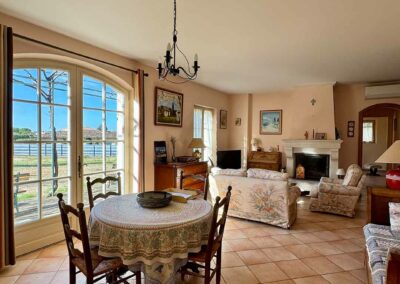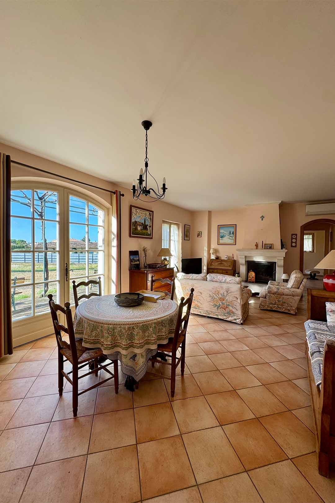 - Un salon chaleureux avec cheminée, baigné de lumière